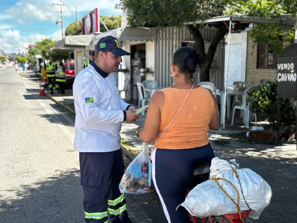 Na ocasião, foram abordados ciclistas, motociclistas e condutores de demais veículos, aos quais foram repassadas orientações sobre comportamento seguro no trânsito, destacando a importância do respeito às normas para a redução de sinistros.