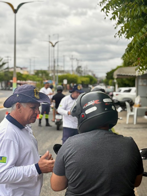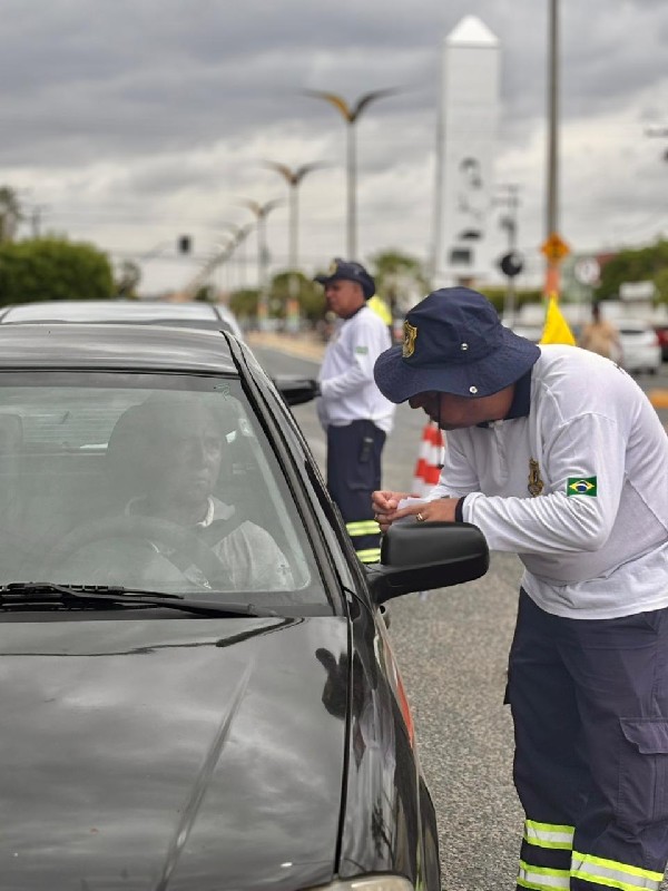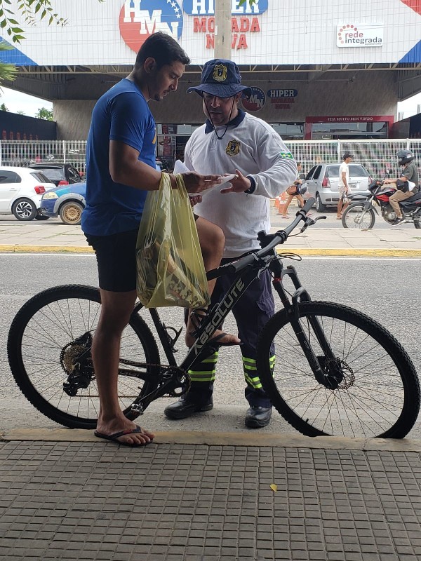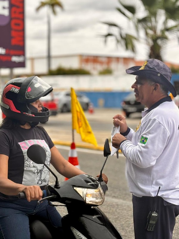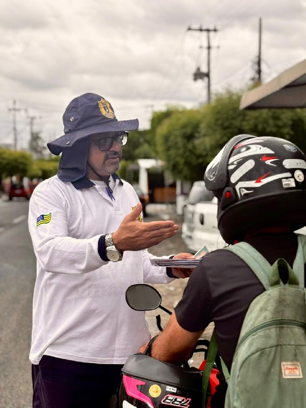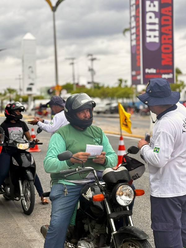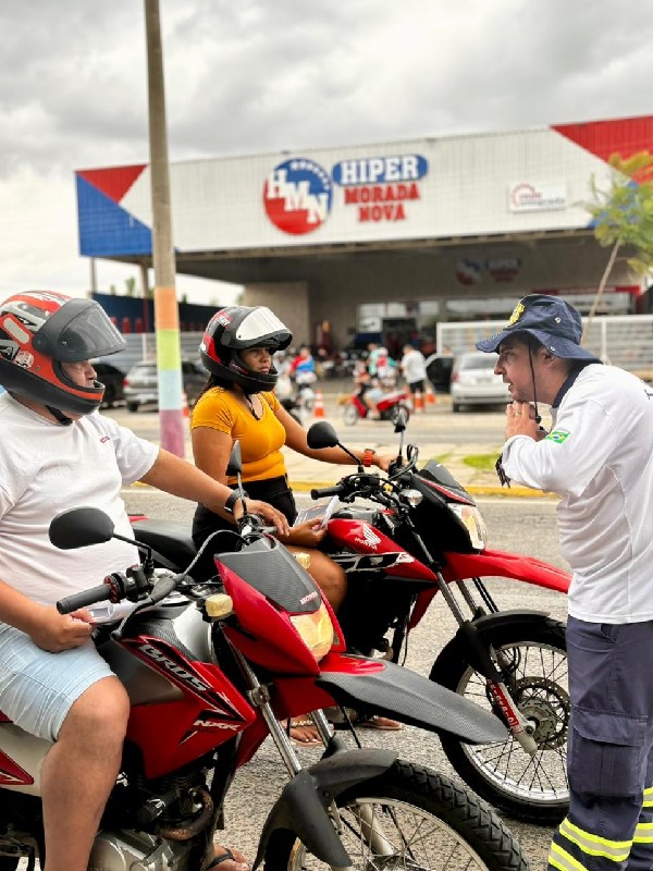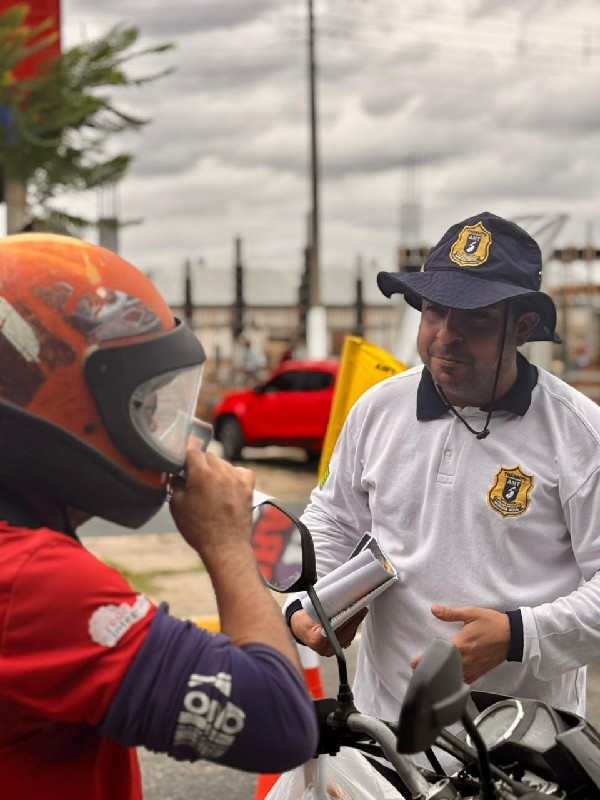 Foto: Ação preventiva ao Carnaval 2026 — Agentes da Autarquia Municipal de Trânsito de Morada Nova orientam motociclistas durante blitz educativa, reforçando a importância do respeito às normas de trânsito